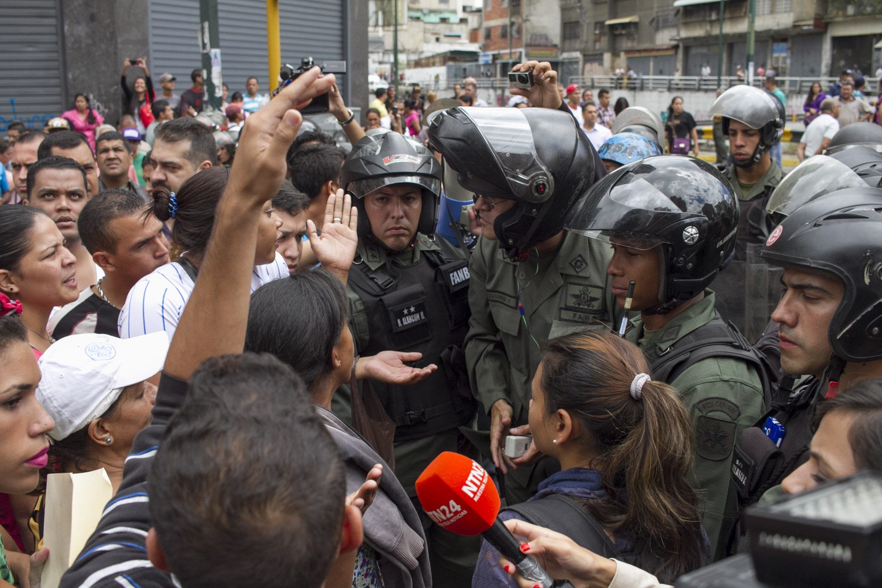 Although the vice-president of the Economic Area, Miguel Pérez Abad, guaranteed this Thursday that in the next 30 days there will be a considerable improvement in the offer of Venezuelan-made products -without explaining how-, protests for food happen daily across the country. This Thursday, there was one in the Fuerzas Armadas and Urdaneta avenues (downtown Caracas). Everything started with the involvement of police officers who wanted to redirect the food that was arriving to a shop to one of the CLAP storage centers. There was a line of people waiting to buy those products, people who can’t benefit from the CLAP. Between waiting to get a bag of food by flattering Nicolás or buying whatever you can, the choice isn’t hard. People want food.