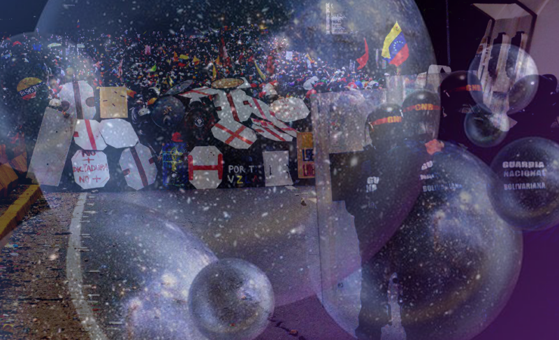 Sebastián walks down the abandoned road, filled with modest houses whose doors lie on the ground in front of them and covered in graffiti claiming so-and-so house to FR “Robert Serra”, ERU “Hugo Chávez”, FLN “Francisco de Miranda”, ADUD “Rómulo Betancourt”, FAL “María Corina Machado” and other dozen different armies too obscure to him.