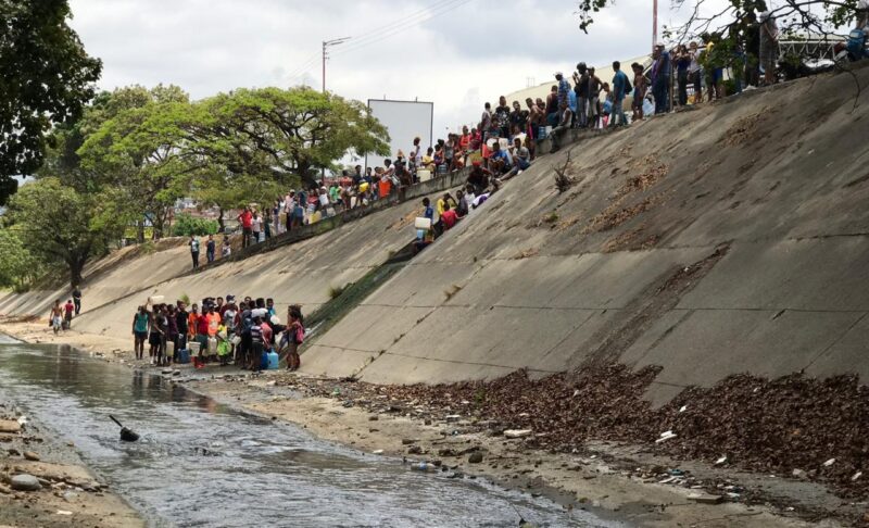 Once a pleasant, clear-water creek, in our times the Guaire is no more than Caracas’ open air sewer. Amid power cuts that took down the water pumping stations that feed Caracas, the people from the slums of San Agustin had to climb down to its embankment to collect water of unknown origin and very dubious safety.