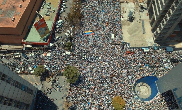 That’s why we’re in the initial phase of Operation Freedom, to organize ourselves. We already have more than 2,000 Aid and Freedom committees. We can’t make it alone, but look around. Are we alone? No we’re not, we are together exercising our rights. Our allies said that it’s premature, are we going to wait or remain active in the streets? It’s because we’re in the streets that we have and will continue to have the world backing us. We’ve worked hard to build this support, while the puppet hides in four blocks in downtown Caracas, we’re in the streets. They’re in panic, Miraflores shakes because we’re in the streets. While they cower in their trenches, we’re in 358 points all over the country.
