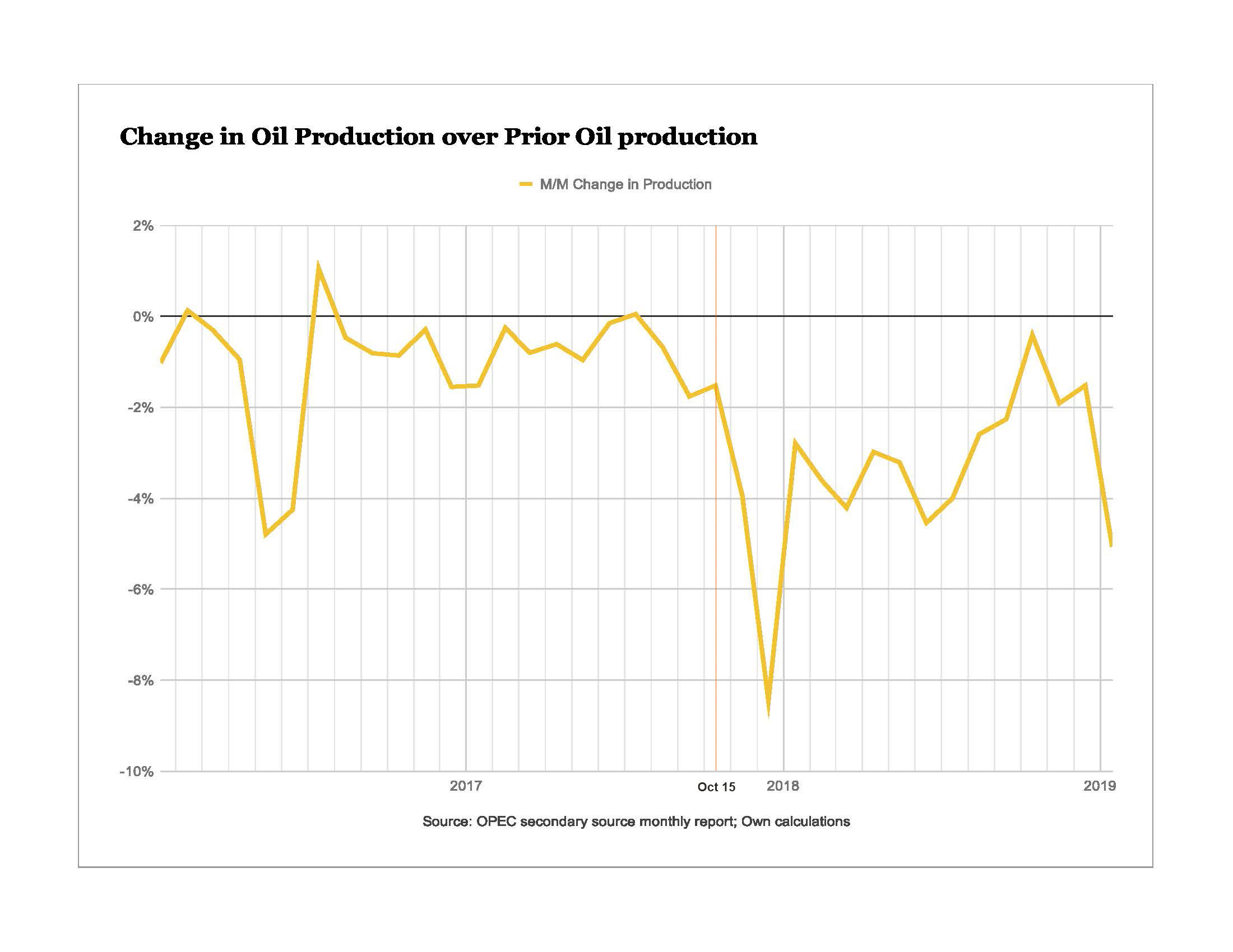 The claim that the 2017 lending sanctions caused the collapse of oil production purely misrepresents supposed correlation as causation. The sharp acceleration of the decline appears in the November 15th and December 15th reports, corresponding to the militarization of PDVSA and the November intensification of the purges within it.