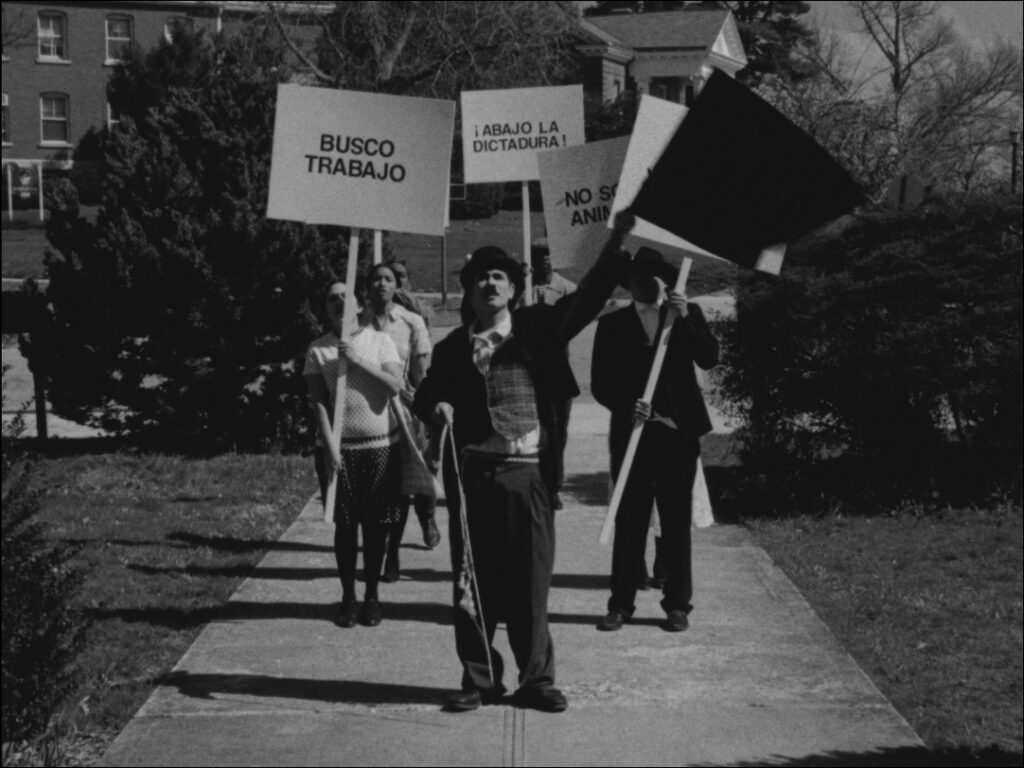 In his 2007 film Letter on the Blind for the Use of Those Who See, Téllez revives the Indian fable of the blind men and the elephant, a powerful metaphor these times in which we insist on seeing as wholes what are merely fragments of our surroundings. In Caligari and the Sleepwalker, he sought out a classic of German Expressionism to explore perceptions in the present. In Amerika, made last year, eight Venezuelan migrants watched a series of Chaplin films and identified with the Tramp to recreate that aesthetic in a collective representation of migration. All of them had crossed the Darién Gap. “This carnivalesque element allows people to talk about their situation without directly confronting the trauma,” says Téllez.
